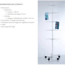 PRESENTOIR CHAUSSETTES 5 ETAGES / 40 BROCHES / 180 CM PW76