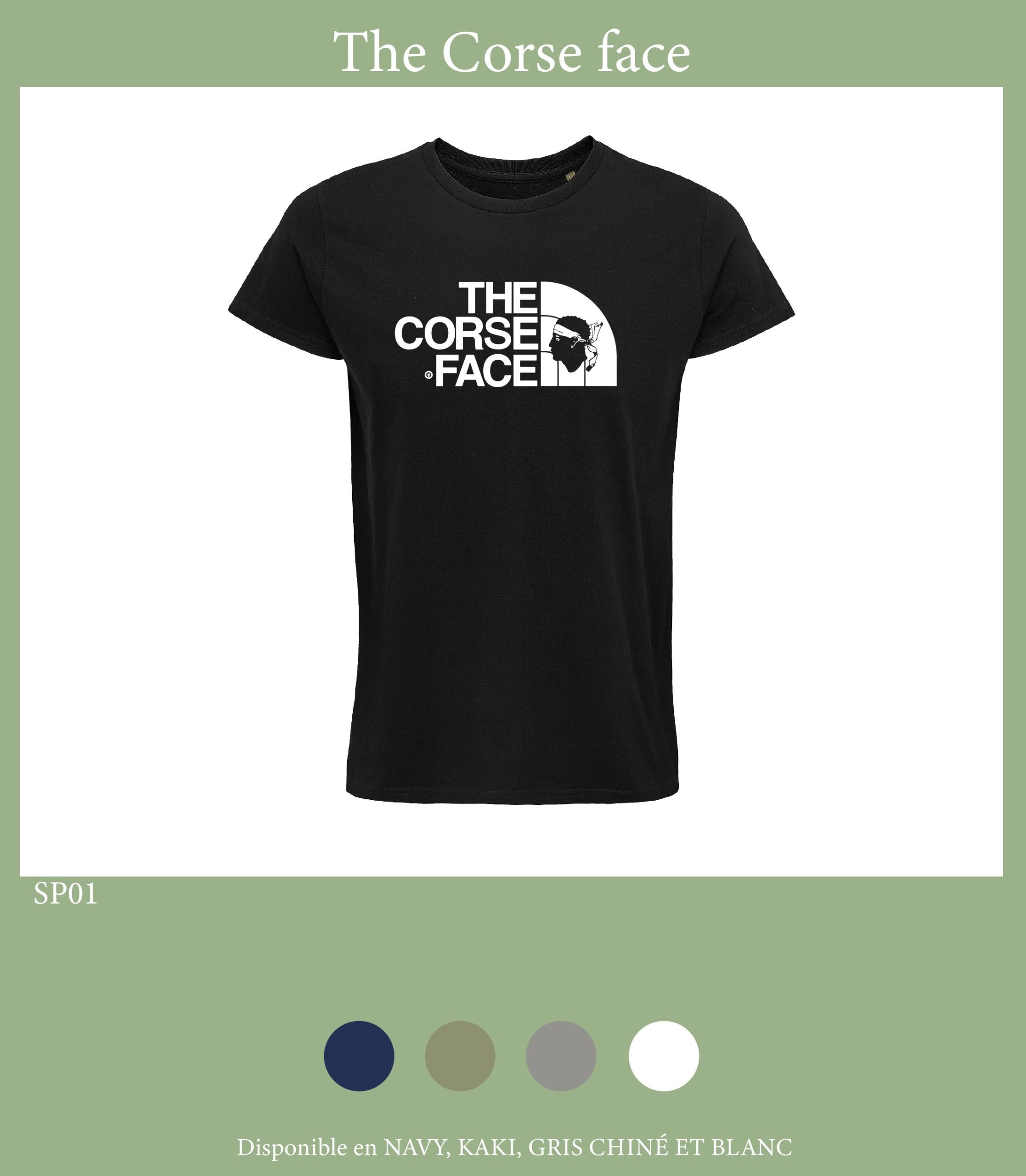TSHIRT ADULTE THE CORSE FACE 6 COLORIS DU XS AU XXL – 100% COTON BIO