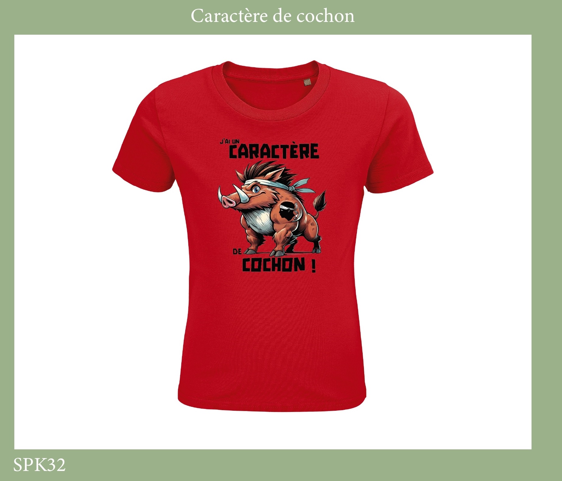 TSHIRT ENFANT CARACTERE DE COCHON DU 2 ANS AU 12 ANS – 100% COTON BIO