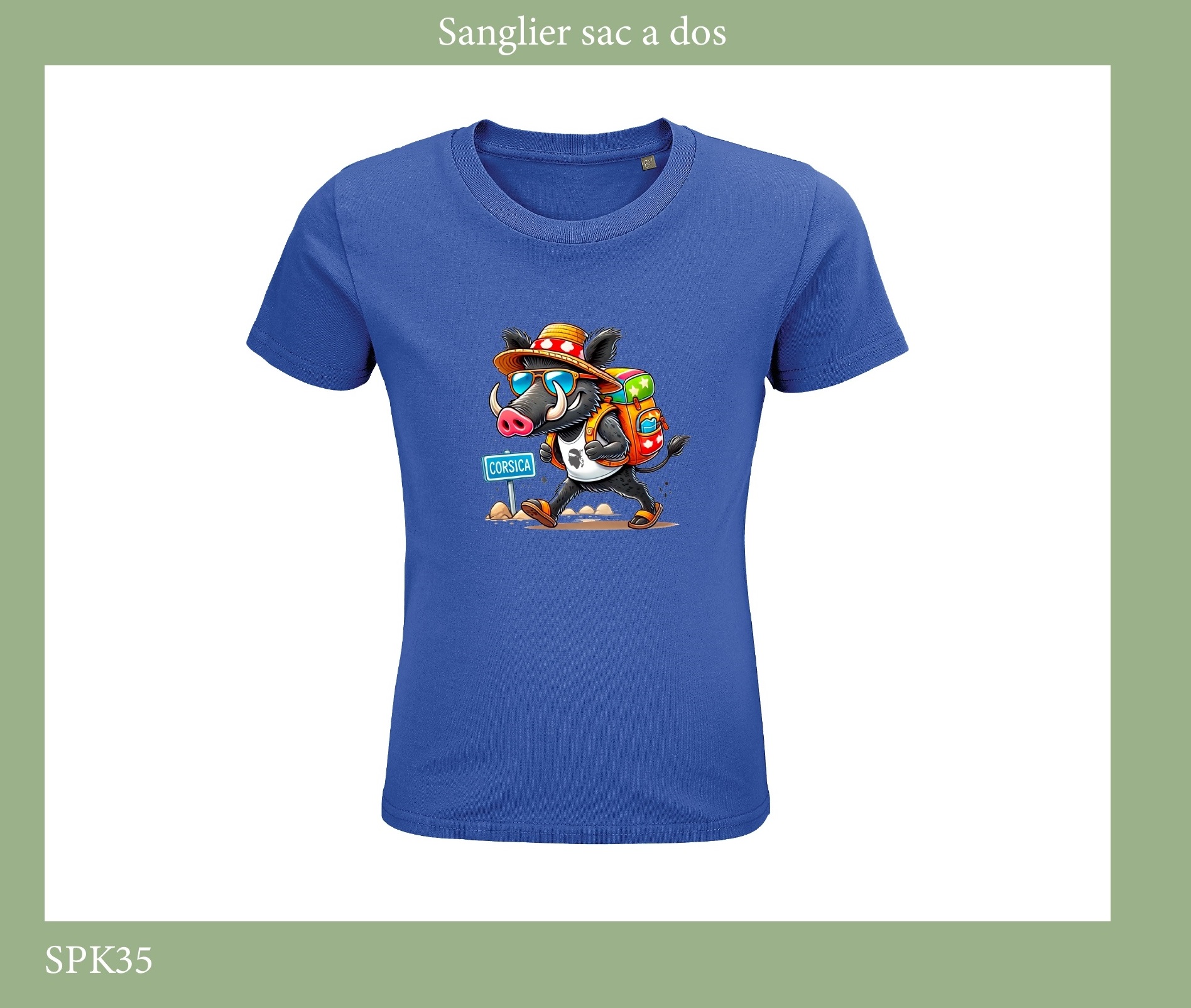 TSHIRT ENFANT SANGLIER SAC A DOS DU 2 ANS 12 ANS – 100% COTON BIO