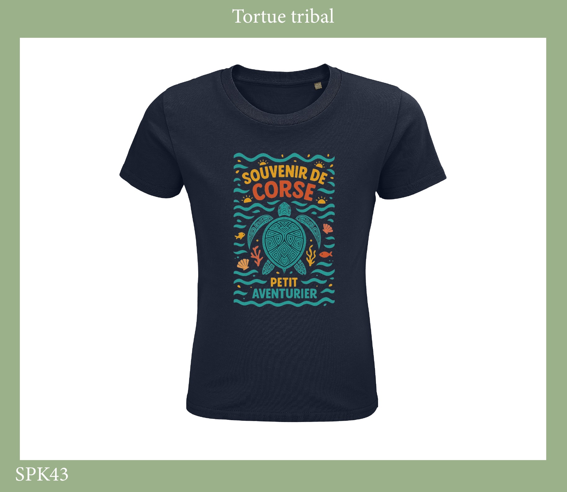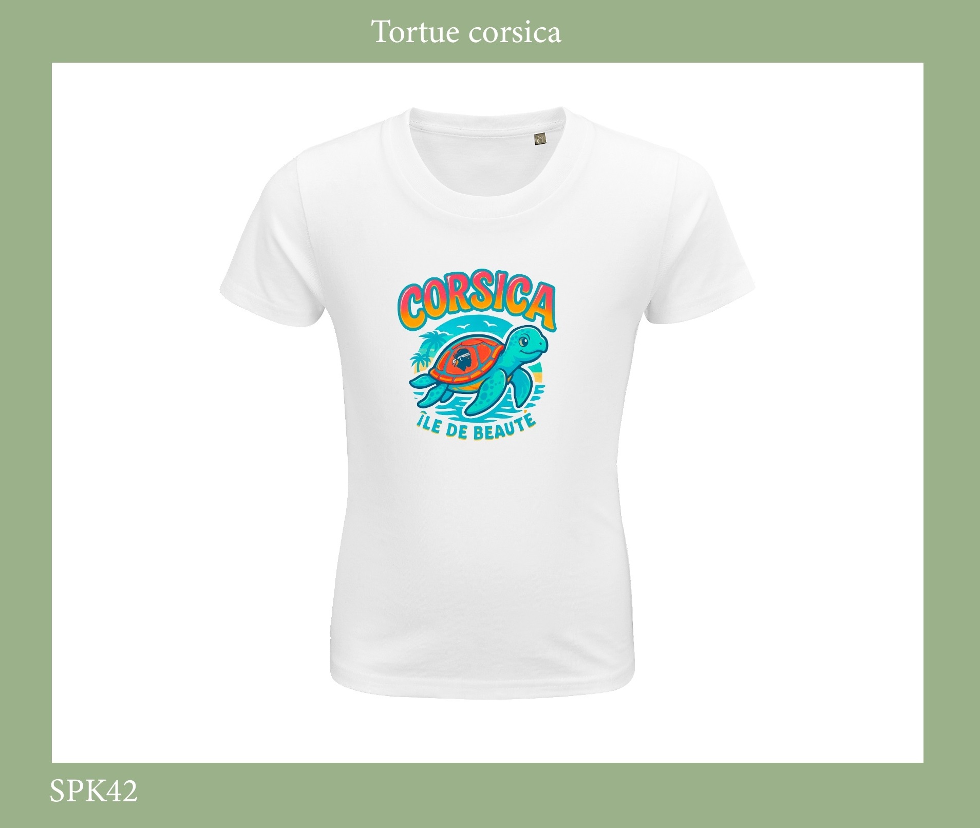 TSHIRT ENFANT TORTUE CORSICA DU 2 ANS 12 ANS – 100% COTON BIOLOGIQUE