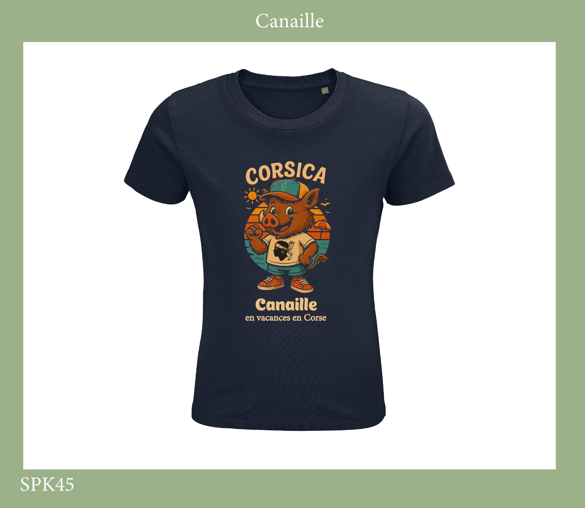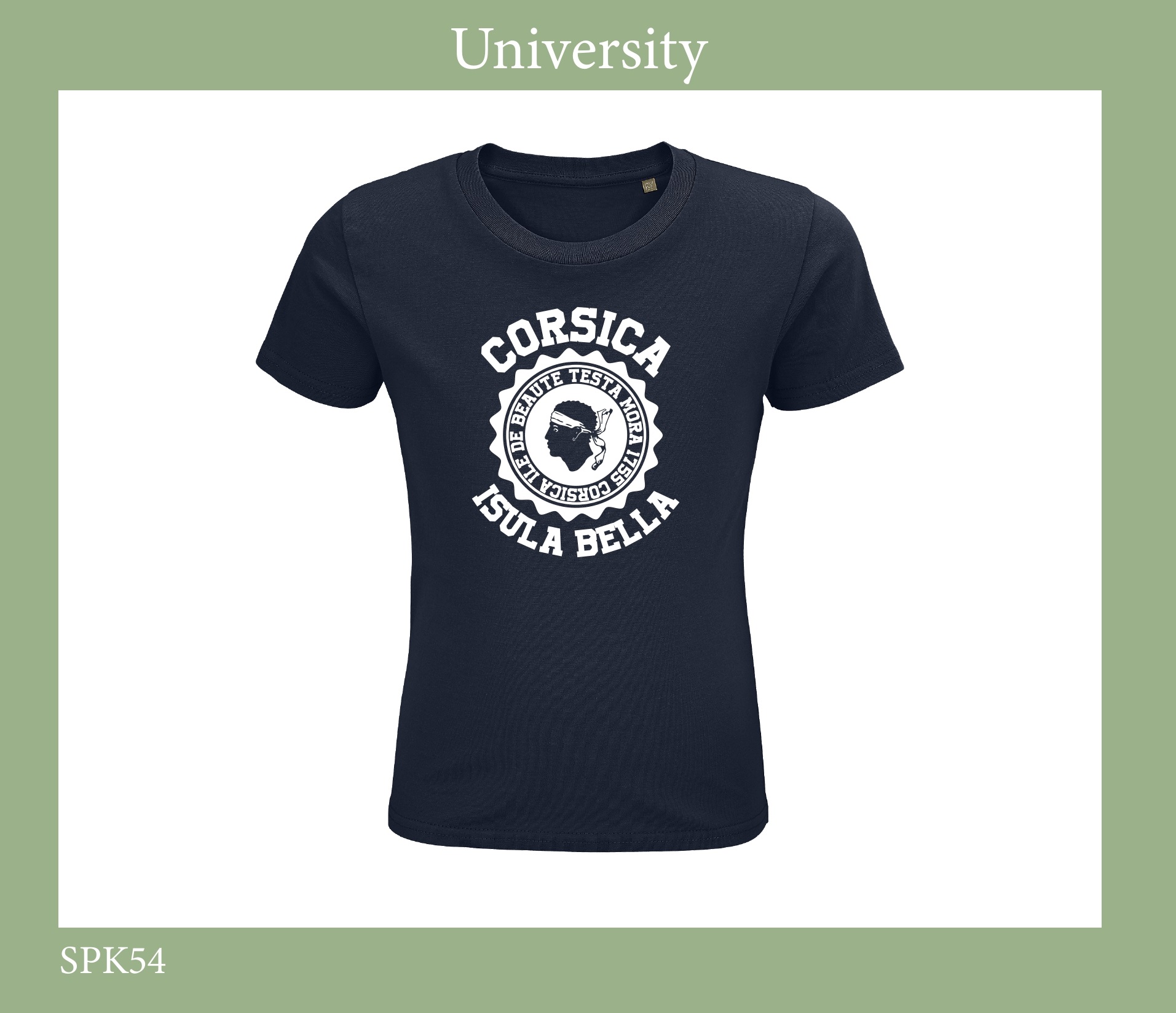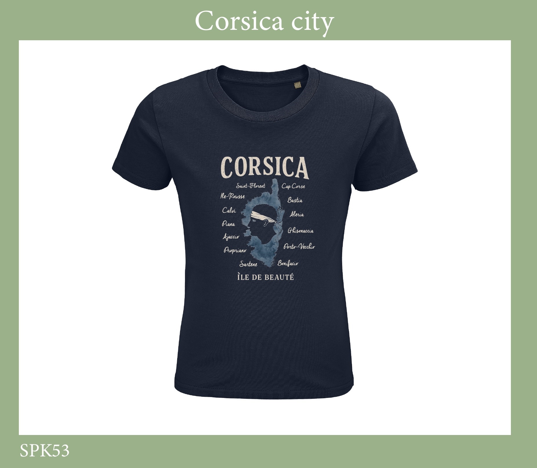 TSHIRT ENFANT CORSICA CITY DU 2 ANS AU 12 ANS – 100% COTON BIOLOGIQUE