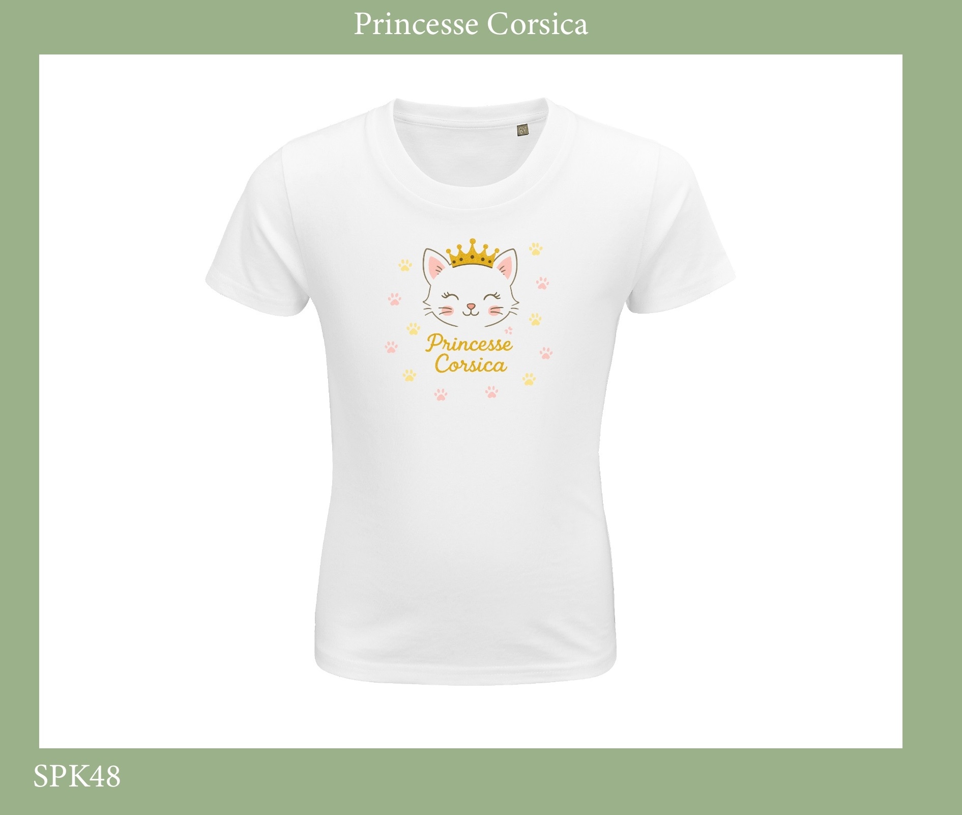 TSHIRT ENFANT PRINCESSE CORSICA DU 2 ANS AU 12 ANS – 100% COTON BIO