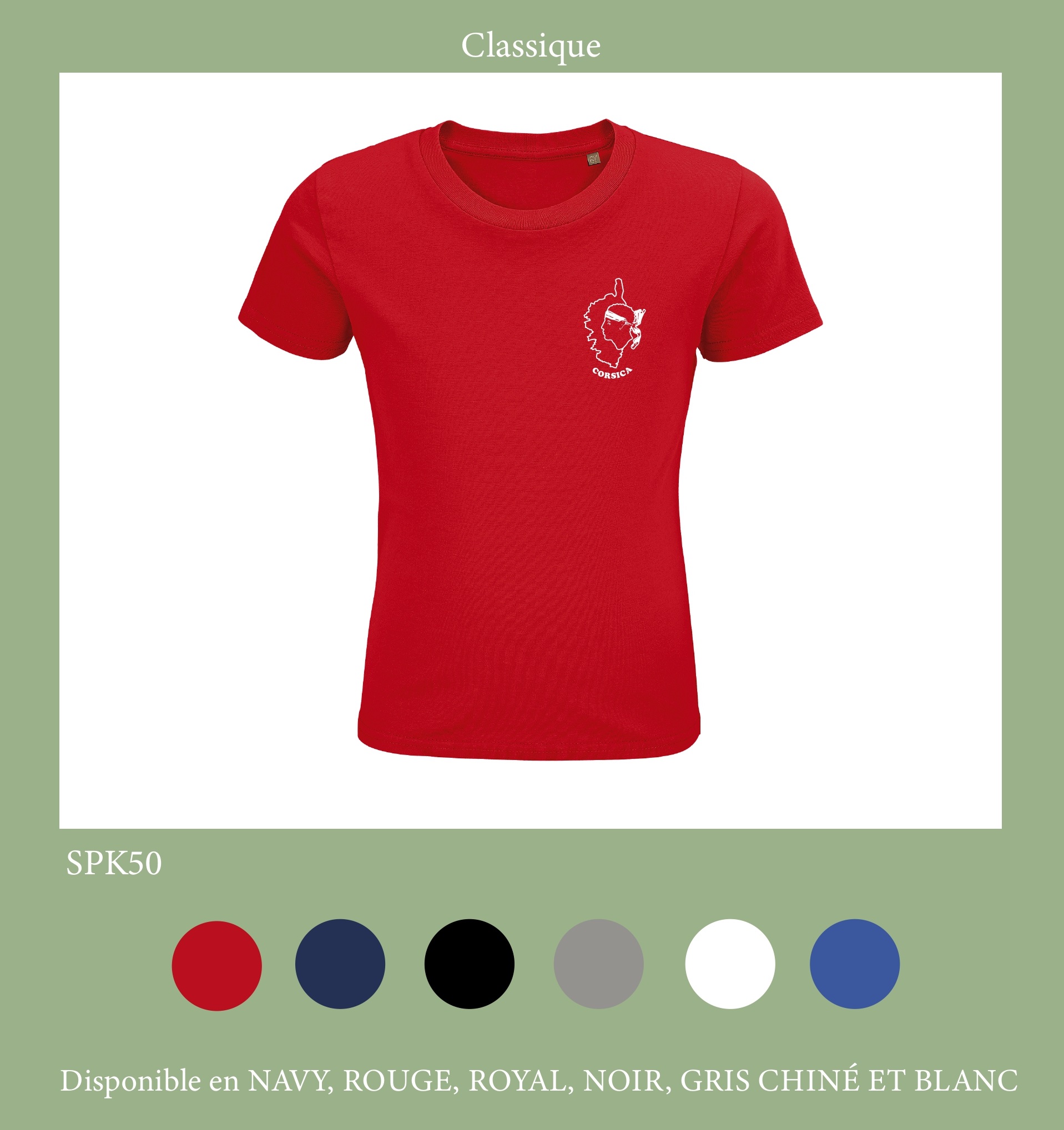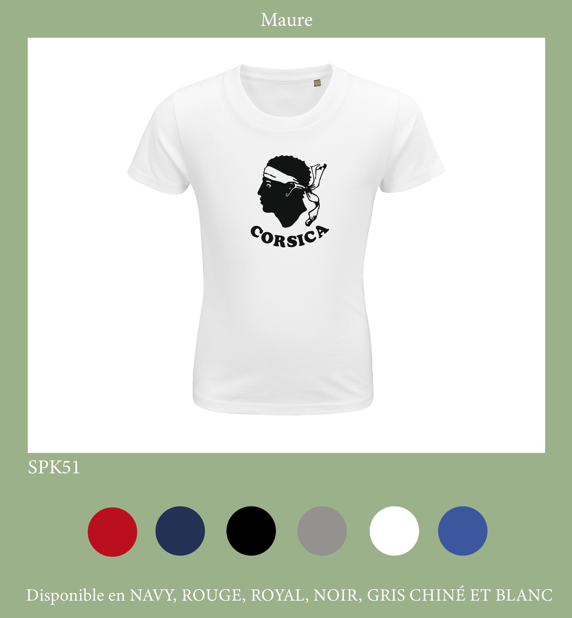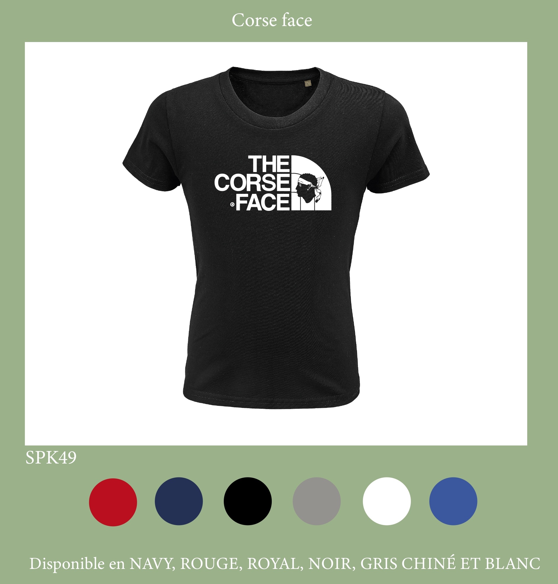 TSHIRT ENFANT CORSE FACE 6 COLORIS DU 2 ANS AU 12 ANS -100% COTON BIO