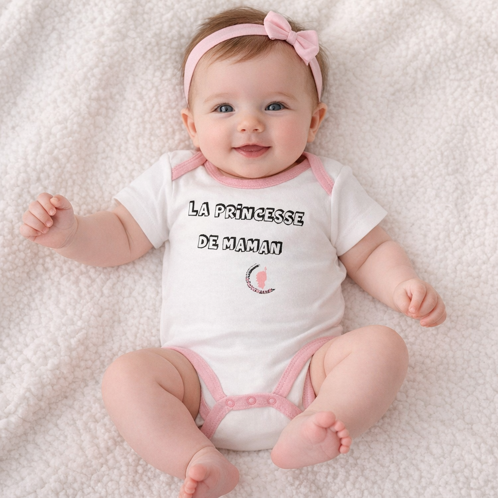BODY “LA PRINCESSE DE MAMAN” blanc/rose (4-5-5-5-5)