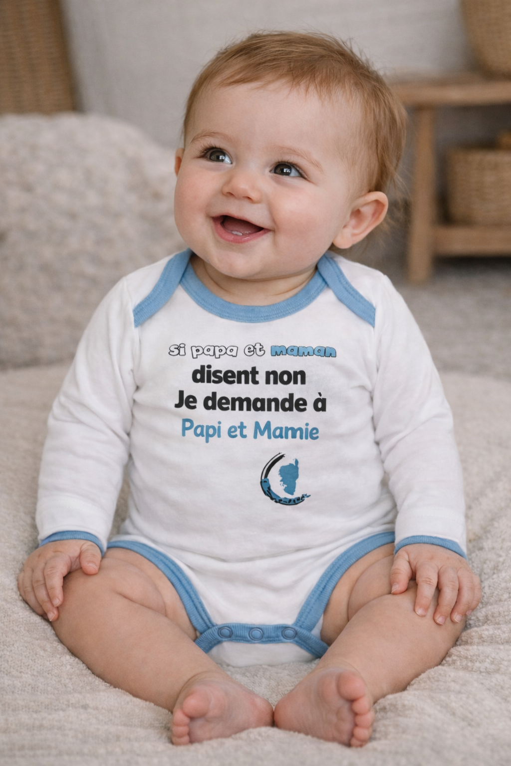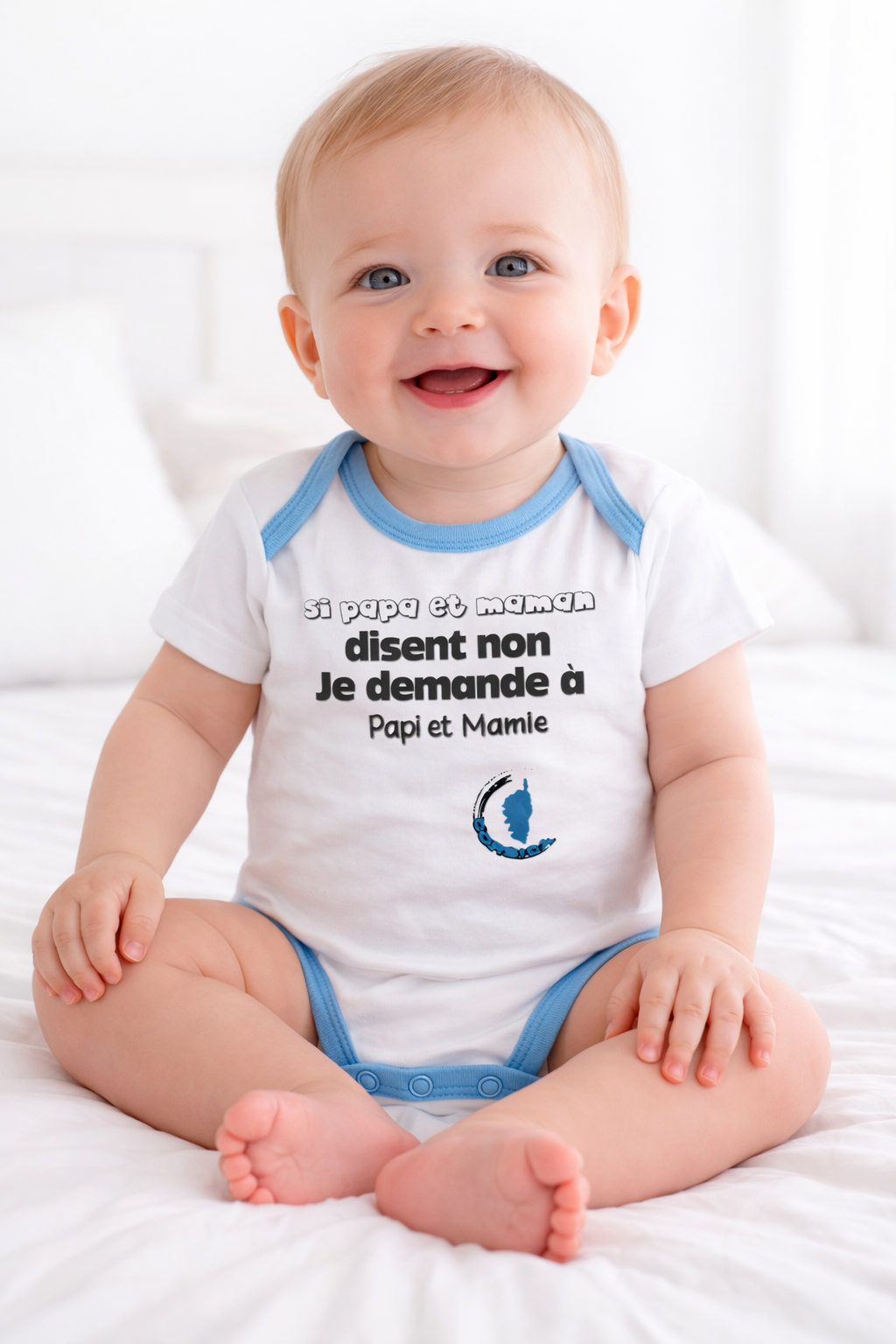 BODY “SI PAPA ET MAMAN DISENT NON…” blanc/bleu (2-6-6-5-5)