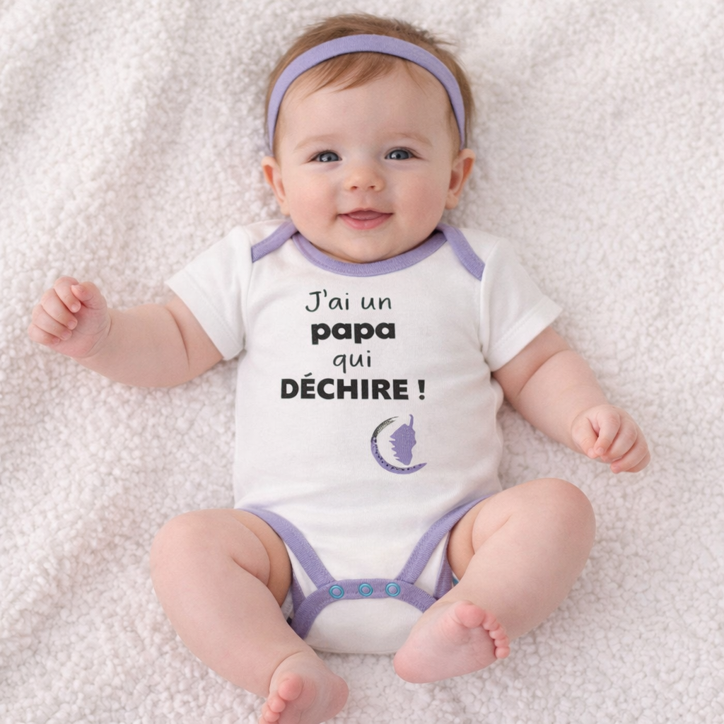 BODY “J’AI UN PAPA QUI DECHIRE” blanc/violet (4-5-5-5-5)