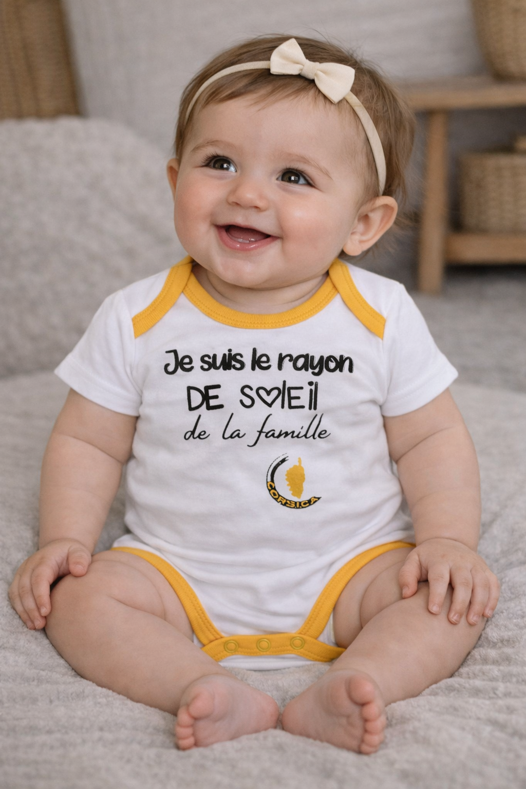 BODY “JE SUIS LE RAYON DE SOLEIL DE LA FAMILLE” blanc/jaune 2-6-6-5-5