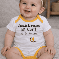 BODY “JE SUIS LE RAYON DE SOLEIL DE LA FAMILLE” blanc/jaune 2-6-6-5-5
