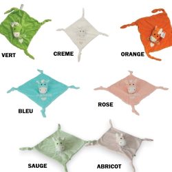 PELUCHE DOUDOU CARRE 5 COLORIS MIXES 28*28 cms