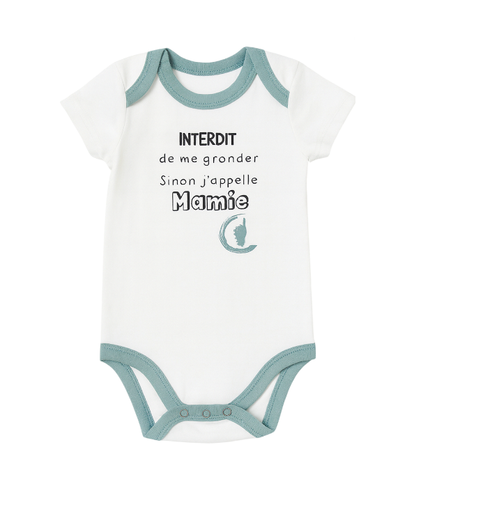 BODY “INTERDIT DE ME GRONDER” BLANC/TURQUOISE (2-6-6-5-5)