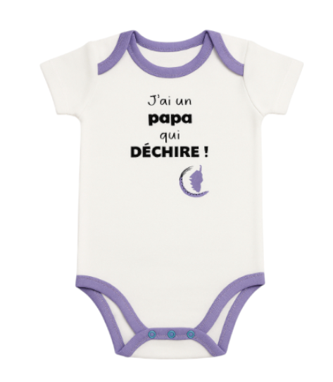 BODY “J’AI UN PAPA QUI DECHIRE” BLANC/VIOLET (4-5-5-5-5)