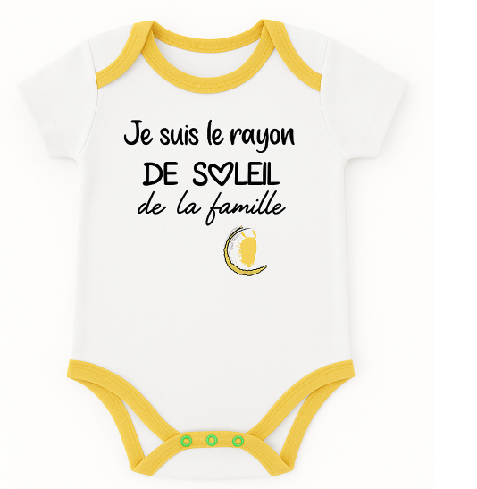 BODY “JE SUIS LE RAYON DE SOLEIL DE LA FAMILLE” BLANC/JAUNE 2-6-6-5-5