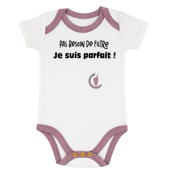 BODY ” PAS BESOIN DE FILTRE JE SUIS PARFAIT” BLANC/LILAS (2-6-6-5-5)