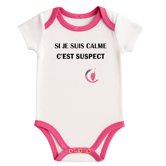 BODY ” SI JE SUIS CALME C’EST SUSPECT” BLANC/ROSE (2-6-6-5-5)
