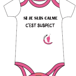 BODY ” SI JE SUIS CALME C’EST SUSPECT” BLANC/ROSE (4-5-5-5-5)